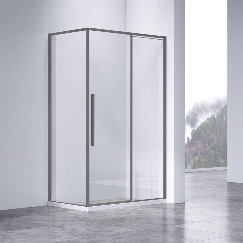VINCEA Slim-N Душевой уголок прямоугольный размер 110x90 см, двери раздвижные, профиль - вороненая сталь / стекло - прозрачное